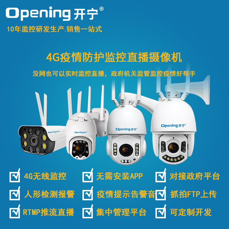 针对这种情况可以使用疫情防护摄像机配合值守,开宁疫情防护监控摄像机可以实时监控直播,可以对接政府平台,政府机关部门进行监管。