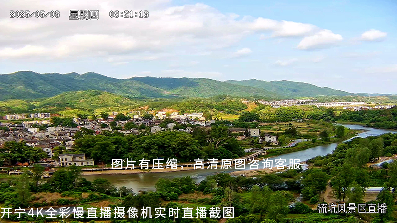 开宁慢直播摄像机的镜头,不仅忠实地记录着古村的砖瓦草木,更细腻地捕捉着人与自然共生的韵律。从高山俯瞰,流坑古城仿佛是从这片土地中自然生长而出的一部分:龙湖的水波顺着地势蜿蜒,与街巷的走向默契呼应;马头墙的坡度巧妙契合着山体的轮廓,仿佛是山的延伸;古樟树的枝叶肆意伸展向天空,浓密的树冠为黛瓦屋顶织就天然的遮蔽,阳光透过叶隙洒下,在地面形成细碎的光斑。这种与自然的交融,让古村少了几分人工雕琢的刻意,多了几分浑然天成的温润。