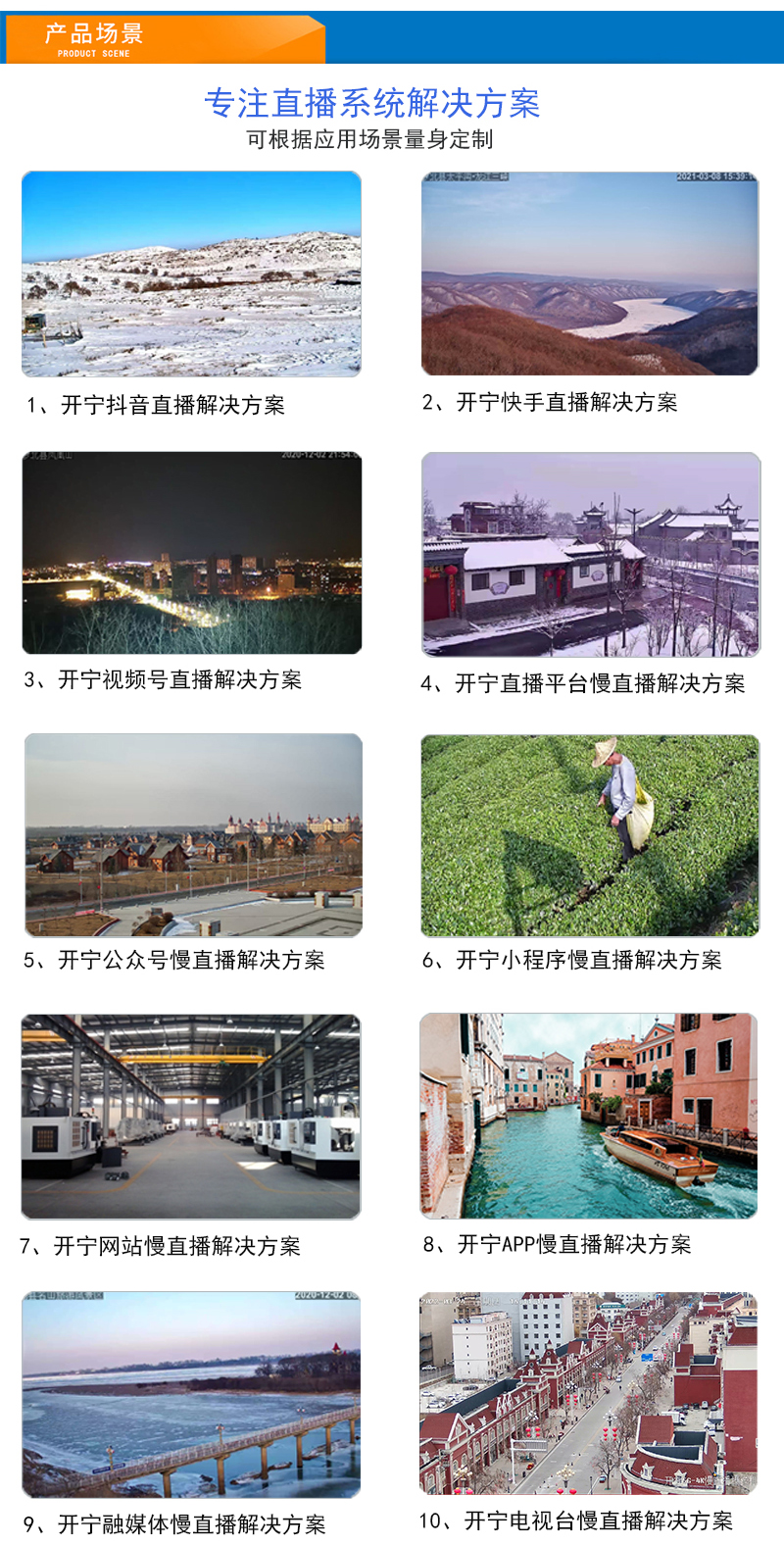 3、明厨亮灶.食品溯源.城市慢直播.美丽乡村.农业慢直播.景点慢直播.户外慢直播等慢直播;
