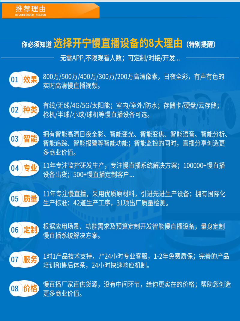 2、不仅可以监控录像,还可以实时慢直播分享创造更多商业价值;