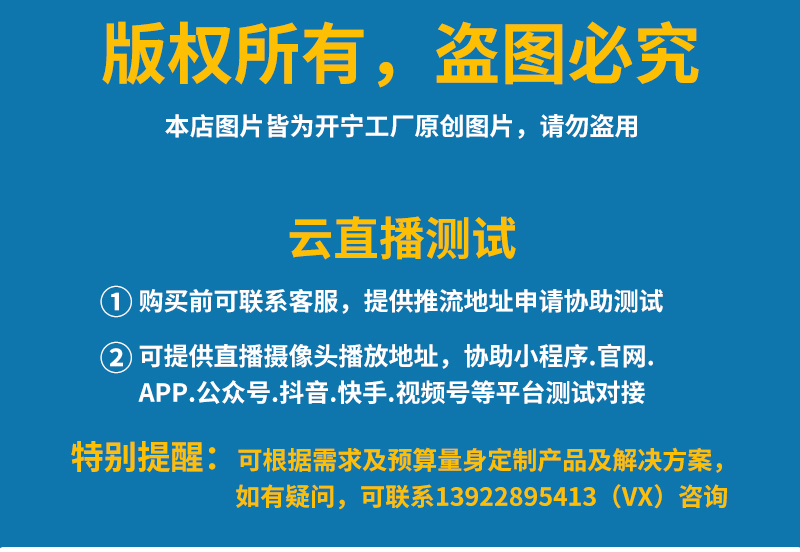 14、内置高清保真拾音器,声音视频同步慢直播;DC12V供电;