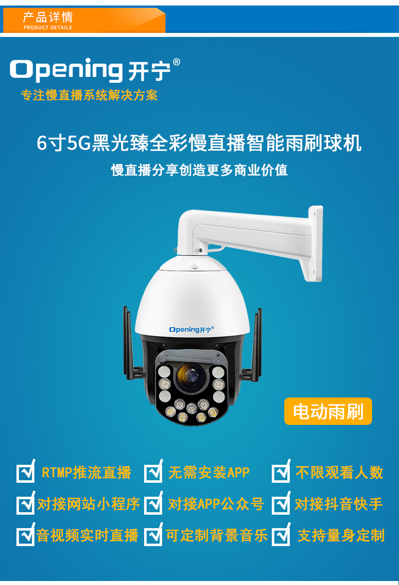 - 6寸5G4K800万黑光臻全彩慢直播雨刷球机